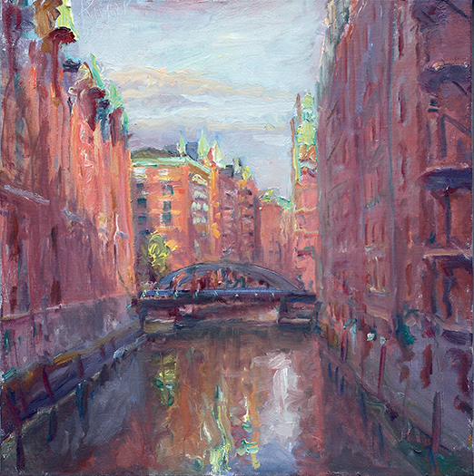 Speicherstadt, Kannengießerort von André Krigar: ­Alltagsszenen mit ­lockerdickem Pinselstrich. © André Krigar
