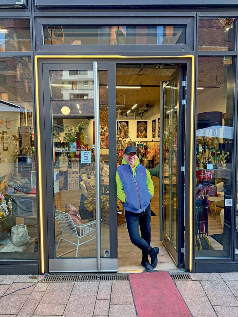 Mit seinen Möbeln und Wohnaccessoires mitten auf dem Überseeboulevard hat Toni Thiel seit Mitte Dezember zur Probe einen solchen beleuchteten Rahmen an seiner Eingangstür installiert. Das sieht vielversprechend aus und trägt schon jetzt zu einer angenehmeren Atmosphäre bei. Wenn alle anderen Geschäfte mitziehen, könnten wir abends und nachts einen ganz neuen Überseeboulevard erleben.