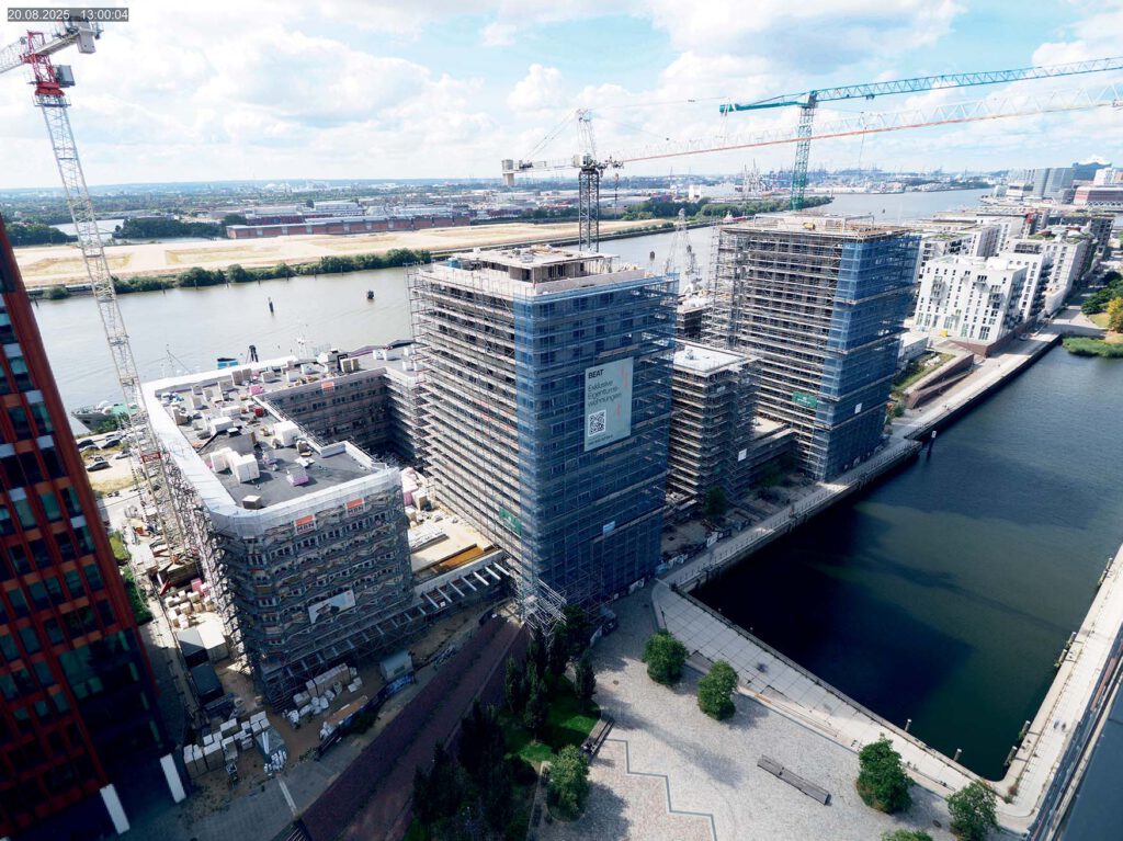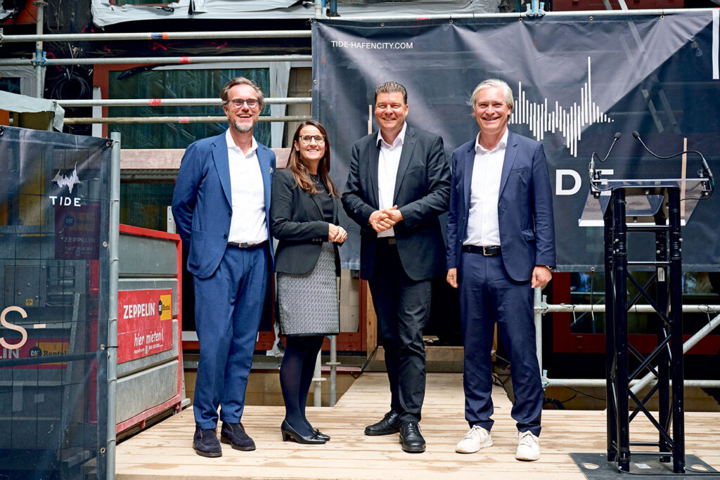 Baakenhafen. Ende September feierte die ECE Group mit CEO Alexander Otto und Partnern das Richtfest der beiden Wohntürme »Beat« und »Pulse« im urbanen Multi-Wohn- und Kulturquartier »Tide« – mit freudiger Erleichterung übers Fertigbauen