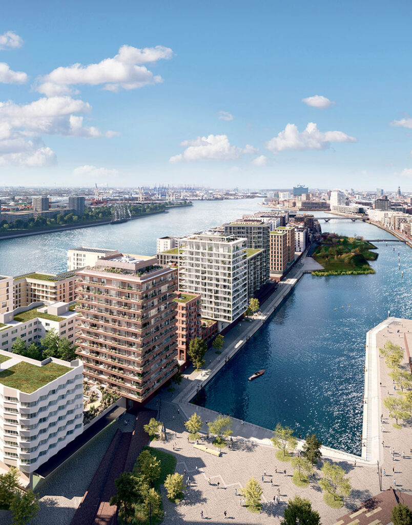 „Mit dem Tide realisieren wir gemeinsam mit unseren Partnern ein lebendiges urbanes Quartier mit neuen attraktiven Wohnungen in einzigartiger Lage in der HafenCity und dem UBS Digital Art Museum als neuem kulturellen Highlight für Hamburg. Das Richtfest ist ein wichtiger Meilenstein auf dem Weg zur pünktlichen Fertigstellung dieser besonderen Projekte im kommenden Jahr“, sagte erleichtert Alexander Otto, CEO der ECE Group, in seiner Festrede zur Feier zum Ende des Rohbaus (siehe auch Interview Seite 22). Entspannung als Unternehmer auch darüber, dass nun das über 600-Millionen-Euro-Invest der ECE Group für über 800 Wohnungen sowie Flächen für Gewerbe, Gastronomie und eine Kita endlich wahrnehmbar wird. Nun beginnt der Fassaden- und Innenausbau, um wie geplant spätestens Ende 2026 vielleicht den Blick (wie im Bild auf Seite 21) aus bequemen Fauteuils durch bodentiefe Fenster auf Elbe und Baakenhafen zu richten. Doch es ist kein isoliertes Luxuswohnen in Ufo-Türmen, sondern, neudeutsch, ein Multi-Channel-Wohn- und Kulturort Tide. Das urbane Quartier in beidseitiger Wasserlage zwischen Elbe und Baakenhafen umfasst die beiden Wohntürme Beat und Pulse, vier Townhouses, ein Gebäude mit Mietwohnungen, ein Wohnheim des Studierendenwerks Hamburg sowie das UBS Digital Art Museum,das ebenfalls ab 2026 die spektakuläre digitale Kunst des internationalen Künstlerkollektivs teamLab erlebbar machen wird.