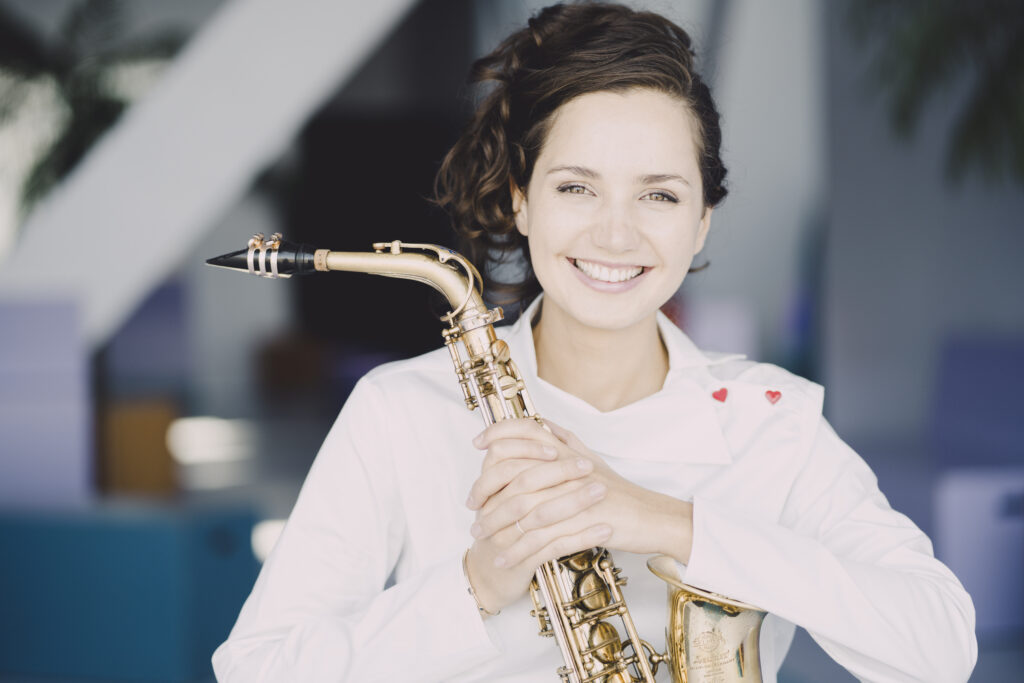 Parallel erweitert sie ihr Repertoire und das Netzwerk jener Musikerinnen und Musiker, mit denen sie arbeitet, auftritt und an neuen Programmen tüftelt. Neben den klassischen Konzerten mit Orchester und Solo- Recitals probiert sie vor allem kammermusikalisch alles aus, was sie interessiert. Ob ein frühbarockes Programm oder Bachs Goldberg-Variationen, arrangiert für Violoncello, Akkordeon und Saxophon, ob Musik der 1920er- Jahre von Erwin Schulhoff und Zeitgenossen oder eine Begegnung von Orgel und Saxophon – alles ist möglich. (Beitragsbild: Asya Fateyeva. © Marco Borggreve)