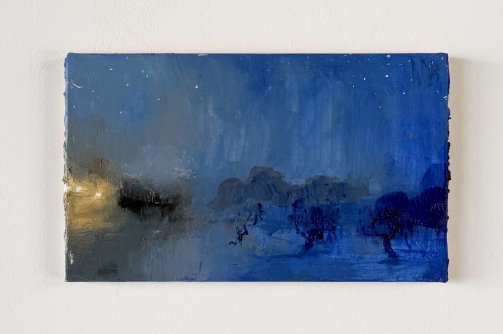 Kailang Yang, »Lange Nacht«, 2025, Öl/Acryl auf Holz, 24 × 40 cm. © YANG KAILIANG