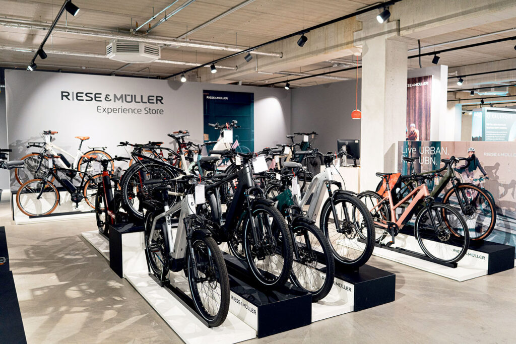 Im schicken Store im Überseeboulevard 4–10 dreht sich vieles um Premium-E-Bikes und -Cargobikes von Riese & Müller. Die Marke steht für durchdachte Technik, hohe Alltagstauglichkeit und Komfort – egal ob Pendelstrecke, Familienlogistik oder Tour ins Grüne.